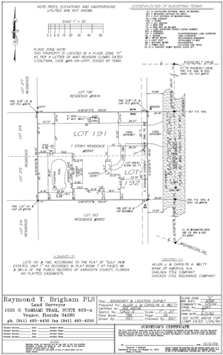 When buying or refinancing a home or commercial property a survey is usually required by your lender. This survey will show the boundary lines of the property and all existing improvements on the property. The survey will also show easements of record plotted on the survey. Utilities servicing the property and fences are some of the other important details that will be shown on the survey. |